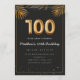 Adorable 100th birthday party invitation in a black and gold balloons design with golden tropical palm leaves. Customize with your party details and mail out to family and friends inviting them to celebrate the 100th birthday with style!