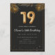 Adorable 19th birthday party invitation in a black and gold balloons design with golden tropical palm leaves. Customize with your party details and mail out to family and friends inviting them to celebrate the 19th birthday with style!