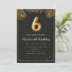 Adorable 6th birthday party invitation in a black and gold balloons design with golden tropical palm leaves. Customize with your party details and mail out to family and friends inviting them to celebrate the 6th birthday with style!