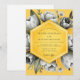 Experience a modern romance with this stunning artistic design, featuring a bold contrast between luminous goldenrod yellow and sophisticated charcoal grey. Lush, grayscale tulips and delicate blossoms are rendered with dramatic, painterly detail, creating a captivating botanical display. This elegant and contemporary arrangement is perfect for a stylish and unforgettable union.