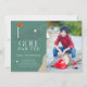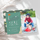 This retro modern kid's birthday golf party/par-tee photo invitation features a red flag and golf balls with a fairway and bunker in a golf course . The reverse side features a dark green background with a golf ball and tee pattern. Personalize it for your needs. You can find matching products at my store.