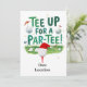 Junte-se a diversão de férias com este cartão de Natal joguinho! Apresentando o trocadilho festivo "Vamos Par-Tee", este cartão é perfeito para jogadores de golfe, entusiastas do esporte, e qualquer um que ame uma reviravolta festiva. Brilhante, alegre e cheio do espírito natalício, é ideal para enviar desejos calorosos a amigos, familiares ou colegas que amam o golfe.