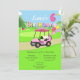 Celebrar o sexto aniversário de uma menina especial com este encantador convite temático de golfe! Apresentando um adorável carrinho de golfe cor-de-rosa estacionado ao lado de um design verde, carregado com detalhes divertidos, um bolo de aniversário festivo, e um monte de balões brilhantes de hélio, incluindo um grande balão número 1. Perfeito para uma família que ama o golfe ou um tema único de sexto aniversário, este convite dá o tom para um dia cheio de diversão no verde.
