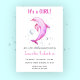 Um pequeno a caminho com este convite de chá de fraldas sob o tema do mar, com o golfinho rosa-bebê em aquarelas moles azuis. Bolhas de água com aquarela.
