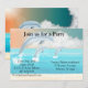 Ilustração de três golfinhos saltando no oceano. 100% Personalização. Clique no botão PERSONALIZAR para adicionar, mover, excluir, redimensionar ou alterar qualquer uma das fontes ou gráficos.