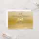Uma imagem amarela e dourada com dois golfinhos e um coração dourado em águas brilhantes. Personalize o texto do verso com suas informações para o seu evento.