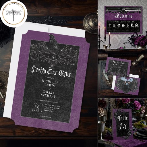 Convite Gothic Raven Purple Darkly Ever After Wedding
