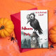 Cartão-postal de convite para festas de Dia das Bruxas Gótica Black Crow & Tower Spooky. Ponha o tom para um Dia das Bruxas assustador com este cartão de convite sinistro! Apresentando um corvo preto assombroso com olhos esmagados e assustadores tocados em cima de uma torre de relógio, esta design é perfeita para enviar arrepios aos espinhos dos seus convidados antes mesmo que a festa comece. O trabalho de arte e a misteriosa vibração criam o melhor ambiente do Halloween, convidando amigos e família para uma noite cheia de surpresas emocionantes. Perfeito para qualquer reunião assustadora, este cartão define a palco de uma noite inesquecível de diversão e medo. Mande-o para fora e deixe a contagem regressiva para uma celebração assombrada começar! Clique em Personalizar esta modelo para adicionar os detalhes da festa do Dia das Bruxas! Copyright Soar em Style Design LLC.