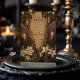 Entra nas sombras com esta design de solteira Halloween inspirada em gótica. Apresentando caixões escuros, velas tremendas e lírios brancos contra um pano de fundo estranho, esta peça assombrosamente elegante define o clima para uma celebração arrepiante, mas sofisticada. Perfeito para aqueles que querem que sua noite de Halloween seja inesquecível.