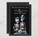 Revele sua história de amor de uma forma encantadora, mas muito charmosa, com nosso Esqueleto Negro Personalizável salvando a data. Apresentando uma noiva branca e um esqueleto de noivo adornada com chapéu azul teal e flores, este anúncio é uma narrativa lúdica para o amor eterno além das limitações da vida. O fundo preto profundo define o palco para um toque de mistério, enquanto os sotaques azuis lacrimogêneos infundem um pop de cor. Totalmente personalizável, esta data salva permite que você infunda seu próprio toque pessoal, fazer-o uma maneira única e memorável de compartilhar suas notícias felizes para sempre.