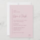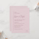 Convite moderno para casamento, com um design geométrico simples e mínimo, com uma linha vertical ao longo do lado esquerdo e os seus detalhes no alinhamento esquerdo. Seus nomes estão em uma escrita manual para um toque elegante. No canto inferior direito está seu monograma inicial sobre uma pequena linha horizontal. A paleta de cores pode ser alterada na ferramenta de edição de design.