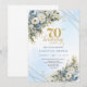 Celebrate a milestone in style with this elegant 70th birthday invitation featuring watercolor dusty blue and white flowers, soft eucalyptus greenery, and a shimmering gold frame. Designed in chic boho style with refined script lettering, this floral invitation is perfect for a classy 70th birthday party. Ideal for formal, garden, or luxury celebrations with a timeless, sophisticated touch.