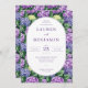 This elegant wedding invitation features a lush floral design with vibrant purple and green hydrangeas, creating a sophisticated and romantic atmosphere. The oval layout is framed by the blooming flowers, adding a touch of natural beauty to the overall aesthetic. The typography is classic and refined, complementing the botanical theme perfectly. Ideal for couples seeking an inviting and timeless look for their special day, this design captures the essence of celebration and love. Customize it effortlessly to reflect your unique occasion.