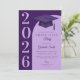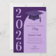 A modern graduation ceremony invitation card with purple colors. The text details and image can be personalized.