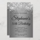 Crie seu próprio na moda fabuloso 50º ou outro convite de celebração de aniversário milestone para ela. A parte superior do convite contém gráficos decorativos, pouco claros, brancos e prateados com brilho. A arte digital de fundo apresenta um gradiente de borda média cinza. Os brilhos, brilhos e brilhos do luxo serão criados por elementos artísticos que impressão gostam de uma foto.