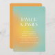 Bold and sweet: This unique and stylish wedding invitation features a colorful gradient ombré effect in shades of mint green, yellow and orange. The back of this wedding invitation is solid bold orange and has a customizable QR code on the back. Perfect for a summer wedding, a retro wedding or a beach wedding. A colorful gradient background and minimal typography and text makes this wedding invitation card unique.