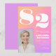 Convites de Aniversário de 82 anos Gradiente Retro Rosa para ela com Foto