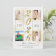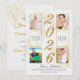 Anúncio moderno de graduação de quatro fotos em folha de ouro falso e branco para o formando. Destaques de folhas de samambaia macia e um lugar para duas fotos de seu garoto ou garota quando eles eram jovens e duas fotos atuais com texto personalizado. Classe de 2022