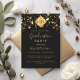 Um cartão de convite elegante e simples para uma festa de formatura de 2023 (ou qualquer ano) para ele e para ela. Um fundo preto e um moderno abstrato preto, em ouro falso, com o dentro do ano. Decorado com estrelas ouros em queda. Personalize e adicione um nome e detalhes da parte. O texto Graduação e o nome são escritos com um script de estilo manuscrito moderno. Texto colorido do ouro. Fundo: Fundo preto e estrelas ouros.