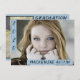 Cobertura de modelo de graduação horizontal com fotos em chic 2 com destaque em uma sofisticada paleta azul de ovo preto e branco. O design frontal apresenta uma imagem e um script de pincel com letra chic com o nome do formando e o ano de graduação. No verso está uma segunda imagem e os detalhes da parte/evento. #certo #classe de2019 #gradparty #graduationparty