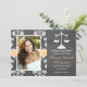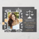 Adicione sua imagem da foto ou do favorito a estes anúncios e convites rústicos e bonito da graduação da escola de direito do laço do damasco do estilo do quadro com escalas de justiça em um estilo dos trabalhos de arte do olhar do giz e um AMARELO impresso E um design costurado BRANCO do olhar da fita. Personalize-o para dizer o que quer que você quer no traseiro e dianteiro do anúncio da graduação do formando do advogado e convida. © Chrissy H. Estúdio dos trabalhos de arte, LLC. Todos os direitos reservados.