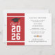 Adicione seu ano de graduação, nome e detalhes do local com data para este moderno fundo vermelho e branco negrito com convite de festa de formatura de tipografia negra usando nosso botão "Personalizar". Convites simples de festa de formatura com rolagem e boné de formatura com cartazes modernos.