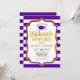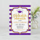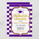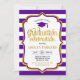 Convite à festa de formatura com tiras brancas roxas. Design moderno e elegante com ouro brilhante falso e fonte de script. Perfeito para uma festa elegante.