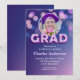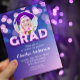 Um design de graduação moderno e elegante com um rico fundo gradiente de roxo a rosa e um efeito de luz bokeh sonhador. O texto negrito "GRAD" se destaca com um efeito 3D brilhante, adicionando profundidade e vibração. Uma moldura circular no topo exibe elegantemente a foto do graduado, complementada por sutil decoração floral. O layout é polido e comemorativo, tornando-o perfeito para um evento de graduação memorável.