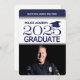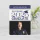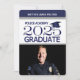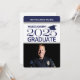 O boné de formatura e a fita estão em azul marinho para coordenar o estilo azul e branco deste convite fotográfico, especificamente para mostrar a nova formando da polícia da academia de polícia.