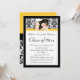 Este convite é totalmente personalizável para o seu texto. Um convite adorável da nossa galeria de convites para a formatura. Escolha o design perfeito para a sua adolescente favorita para combinar com o tema da recepção, a cor do vestido ou o tema da dança. Design feminino, preto e branco, com sotaque amarelo ensolarado fresco, junto com uma foto personalizada solteiro.