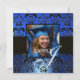 Convite GRADUAÇÃO DAMASCO MONOGRAMA, azul branco preto