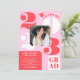 Faça sua pop de festa de formatura com nossos convites para 2023! Apresentando uma espantosa paleta retrorreflectora rosa e vermelha e formas geométricas quadradas únicas e arredondadas e uma data em negrito de 2023, adicione 5 de suas fotos favoritas. Convide seu convidado para sua casa aberta e anuncie sua formatura em estilo.