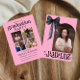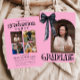 Celebre a grande conquista do seu formando em estilo com este elegante Convite para Graduação de Arcos Rosa e Negro, com espaço para fotos! Este design moderno e chic combina sotaques negros ousados com tons cor-de-rosa suave e um detalhe de arco clássico, fazer perfeito para festas de segundo grau ou formandos. Personalize-o com suas fotos favoritas, detalhes de graduação e mensagens incríveis para criar um anúncio único e memorável. Ideal para raparigas e jovens mulheres, esta modelo é perfeitamente personalizável e pronta a impressionar!