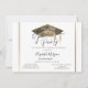 Boné de formatura de aquarela, quadro dourado e fundo preto.