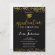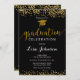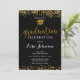 Convite para Graduação de Glitter Minúsculo Dourado e Preto Elegante