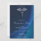 Símbolo nobre de cromo escuro do precioso Caduceus em um design de fundo azul moderno para seu convite para a graduação para seus amigos e familiares.