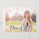 Um convite para apresentação de fotos da formatura em 2015. Apresentando um confete de brilho elegante em tons de ouro e rosado feminino. Personalize facilmente adicionando suas informações de foto e evento. Perfeito para a graduação, formandos ou festa de formatura de um mais velho de segundo grau. Designs são gráficos impressos em formato plano - NÃO É VERDADEIRO GLITTER.
