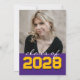 Convite Graduação de Fita de Chalkboard Dourada Roxa