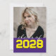Convite Para Graduação De Fita Púrpura E Amarela - Colagem Fotográfica De 5 Fotos De Lado Duplo - Inclui Envelopes Cinza Leve Fundo Do Quadro De Chanfro