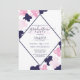 Este convite de festa de formatura moderno e elegante é perfeito para um evento de na moda e classe. Apresenta flores cor-de-água rosa e cor-de-rosa-claro-claro-rosado com silhuetas florais azuis-marinhos e uma estrutura de diamante sobre um simples fundo branco. É bonito, simples, fofo e único. Estilize os seus convites com esta trabalho de arte original pintada à mão e de um tipo feita pelo artista de La Femme. Rachel Matheney. ***NOTA DE DESIGN IMPORTANTE: Para qualquer solicitação de design personalizada, como solicitações de correspondência de produtos, alterações de cor, mudanças de posicionamento ou qualquer outra solicitação de alteração, clique no botão "MENSAGEM" ou envie um e-mail ao designer diretamente em lafemme.art@gmail.com. Você pode até enviar um e-mail para ela solicitando um design completamente personalizado e novo.
