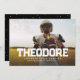 Com um nome ousado em uma foto de solteiro, este anúncio de graduação é perfeito para um atleta graduado. Com uma fonte do estilo letterman, seu design pode ser personalizado com todos os detalhes do formando na frente. A parte traseira inclui espaço para duas fotos adicionais, assim como texto que pode ser usado para detalhes de convites para festas de formatura, planos futuros ou qualquer outra coisa que você queira. Com seu estilo esportivo, esse anúncio de graduação e convite é excelente para caras e meninas e trabalha com uma variedade de fotos.