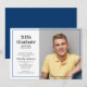 Este convite de festa de formatura clássico apresenta uma fotografia e um texto personalizado para os detalhes da festa de formatura com uma borda azul. O verso é azul escuro.