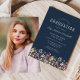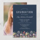 Convite Graduação de Foto Azul do Marinho Boho Wildflower