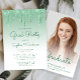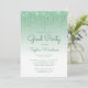 Convite moderno para a graduação, com uma borda verde de brilho sujo, num fundo ombre. As palavras "Partido Formando" e o nome da honra aparecem no script de escrita manual verde, com o texto restante na fonte sans serif. O verso exibe uma foto vertical personalizada, com a palavra "Formando" na cobertura de script de escrita manual verde, e o nome do formando, escola e ano de graduação abaixo na fonte sans serif. Substitua facilmente a imagem de amostra pela foto do seu próprio formando. Uma tela de gradiente branco ajuda a garantir os pop de texto.