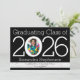 Anúncio de graduação de fotos do padrão de mármore preto e branco ou convite de festa de formatura para a faculdade, segundo grau. Carregue uma imagem on-line e ela é inserida automaticamente no espaço do quadro de fotos dentro do zero. Design casual e moderno apresenta a classe de caracteres "8.8.2". OBSERVAÇÃO: Este convite é para o ano exibido APENAS! O ano NÃO é atualizado automaticamente.