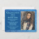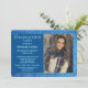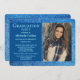 Convite simples e na moda azul de festa de formatura de denim que pode ser personalizado. Fácil de inserir sua foto e personalizar texto.