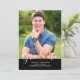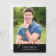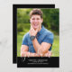 Anúncio de Graduação de Fotos Elegante Simples com um design vertical elegante e simples a preto. Adicione uma foto e detalhes de graduação para personalizar. A cor de fundo no verso do convite pode ser alterada para complementar a foto ou para adicionar uma cor escolar.