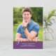 Anúncio de Graduação de Fotos Elegante Simples com um design vertical elegante e simples em roxo. Adicione uma foto e detalhes de graduação para personalizar. A cor de fundo no verso do convite pode ser alterada para complementar a foto ou para adicionar uma cor escolar.