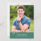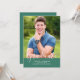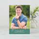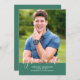 Anúncio de Graduação de Fotos Elegante Simples com um design vertical elegante e simples em verde. Adicione uma foto e detalhes de graduação para personalizar. A cor de fundo no verso do convite pode ser alterada para complementar a foto ou para adicionar uma cor escolar.