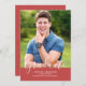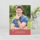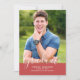 Anúncio de Graduação de Fotos Elegante Simples com um design vertical elegante e simples a vermelho. Adicione uma foto e detalhes de graduação para personalizar. A cor de fundo no verso do convite pode ser alterada para complementar a foto ou para adicionar uma cor escolar.